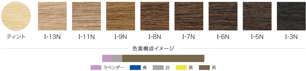 • トーンダウンに必要な程よい赤味は含みつつ、灰味や青味を少しだけ加えて寒色に寄せることで、アッシュなどと組み合わせても濁りにくい。
