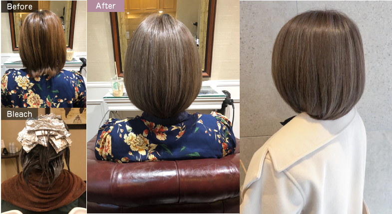 ※ブリーチ1回のみの場合、オンカラー後グレー程度になります。