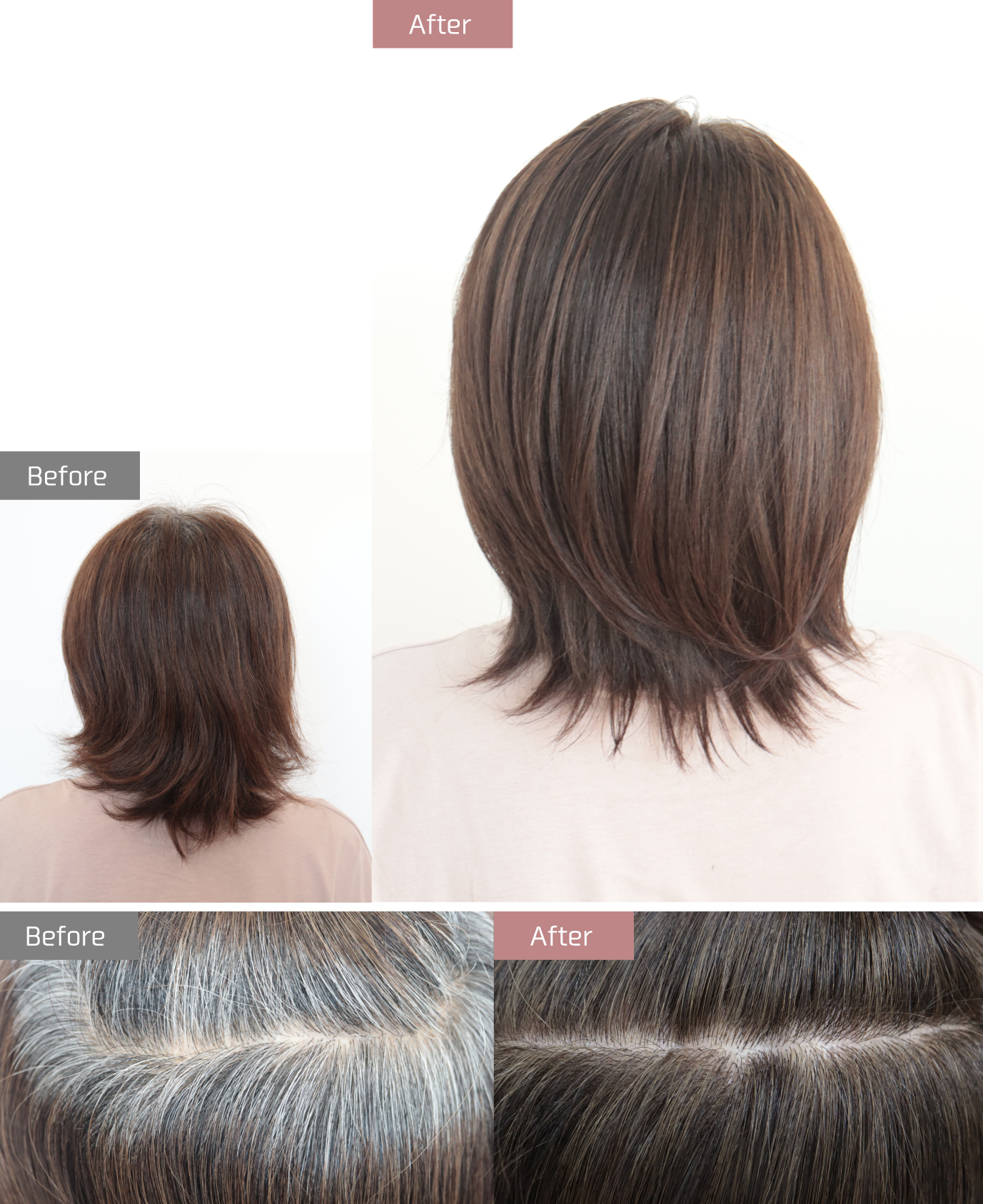 白髪もカバーしながら、オリーブ系カラーを楽しめるレシピをご紹介します。今回は、ファッションカラーの「イロリド」だけでなく、ファッション・グレイ兼用カラーの「ヒカリナス」やグレイカラーの「ネイチャーディープカラー」も使用。ブラウン味がやや強くなりますが、その分、白髪の染まりがよくなります。