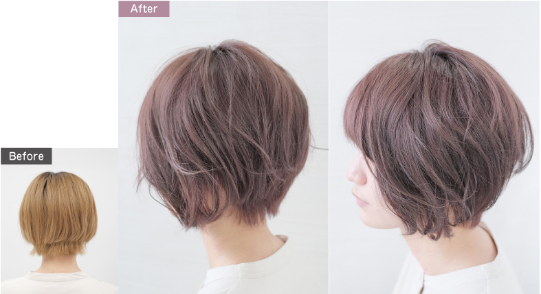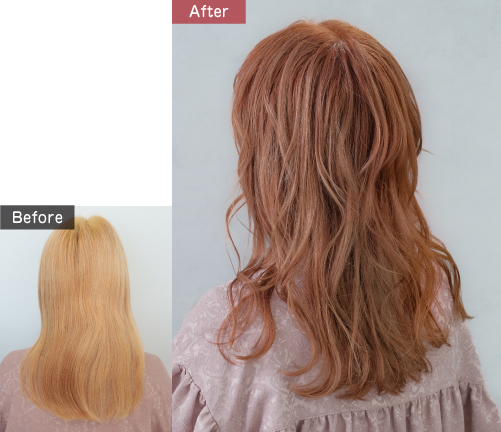 ブリーチ後の色落ちも、まろやかなミルクティー系の色味に変化。
