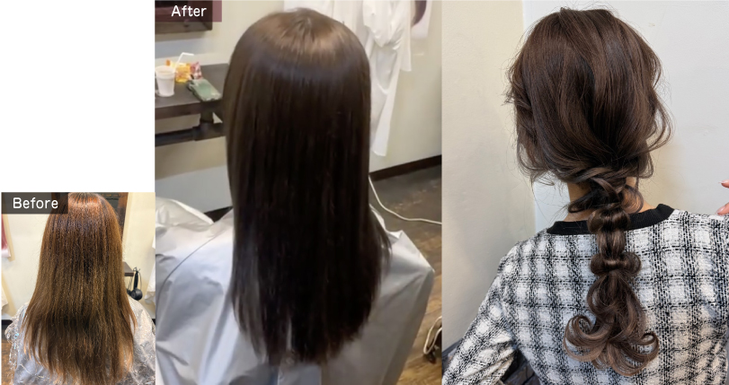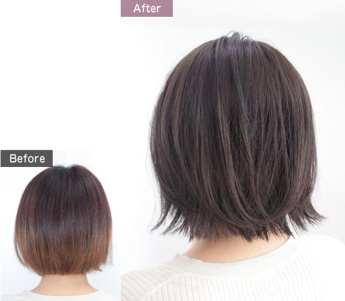 明度のコントロールだけでなく、処理剤の使用をあわせて行っていただくことで、薬剤が均一に浸透しやすくなり、ダメージリスクを減らすことができます。