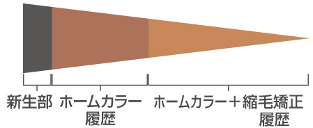 新生部・ホームカラー・縮毛履歴の難関ベースを均一なブラウンに