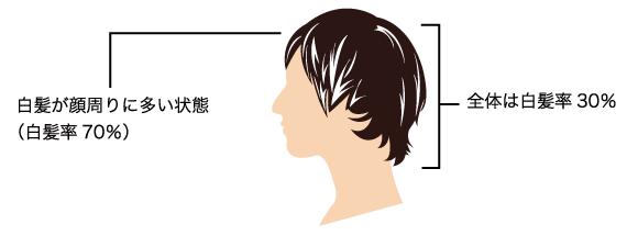 例えば、全体的には白髪率30%だけど、顔回りだけ白髪率が70%あるという場合、