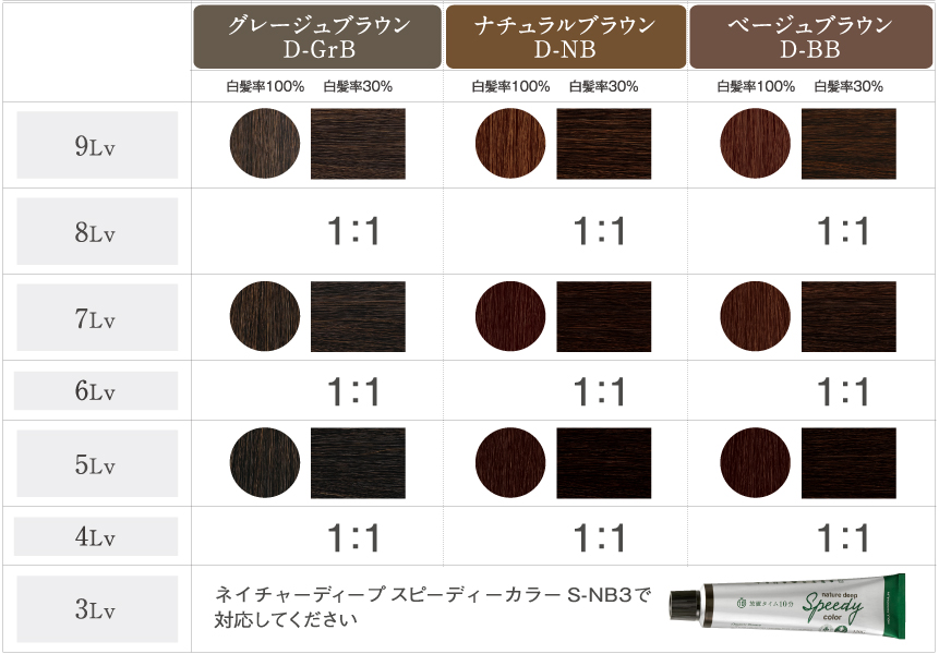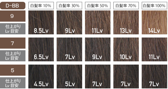 ネイチャーディープカラーは白髪率30%の方を基準にした明度設定です。