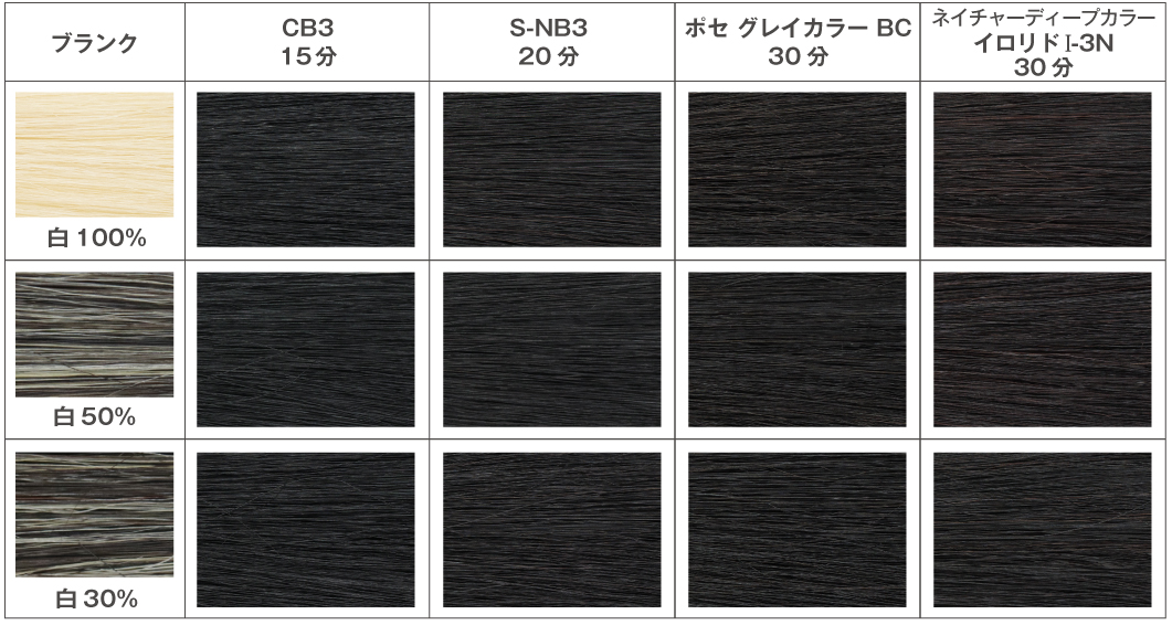 白髪率の高い方も黒くしっかり染めることができる、アルカリカラー3Lv。