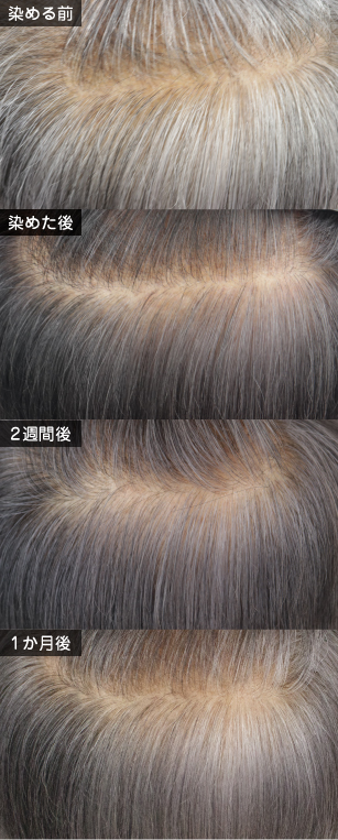 - 白髪率が低い方はこのレシピで全体が明るい色にはなりません。黒毛が残ります。