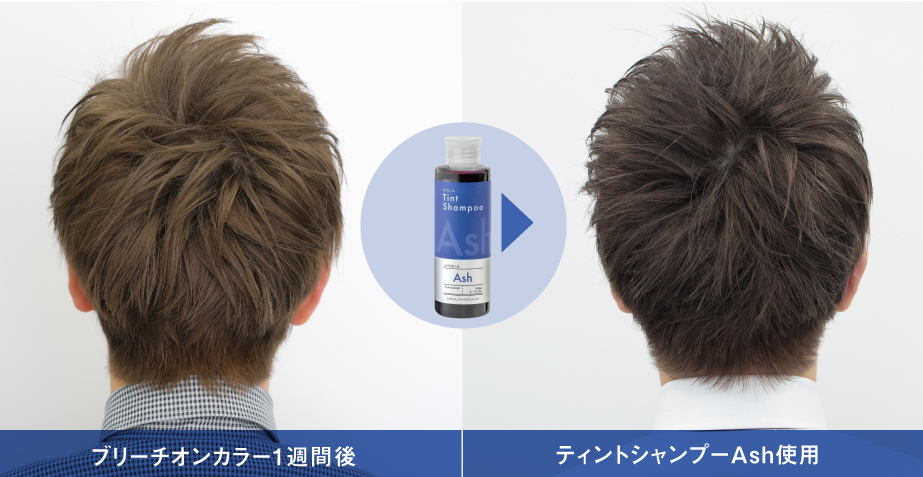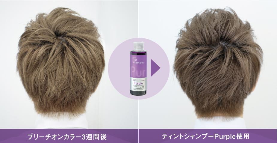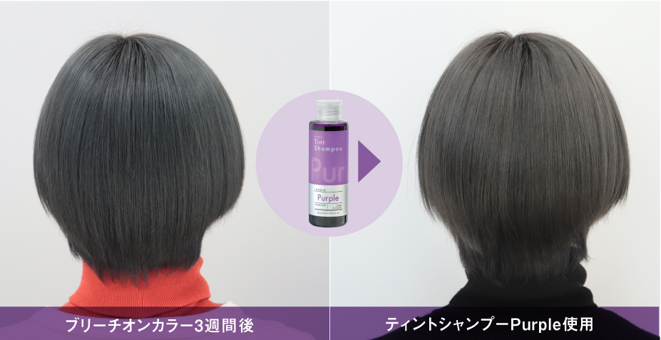 カラーシャンプーを使うことで、黄味が強くなるだけの褪色過程ではなく、ホワイト寄りのブリーチヘアーへの褪色過程を楽しんでいただけます