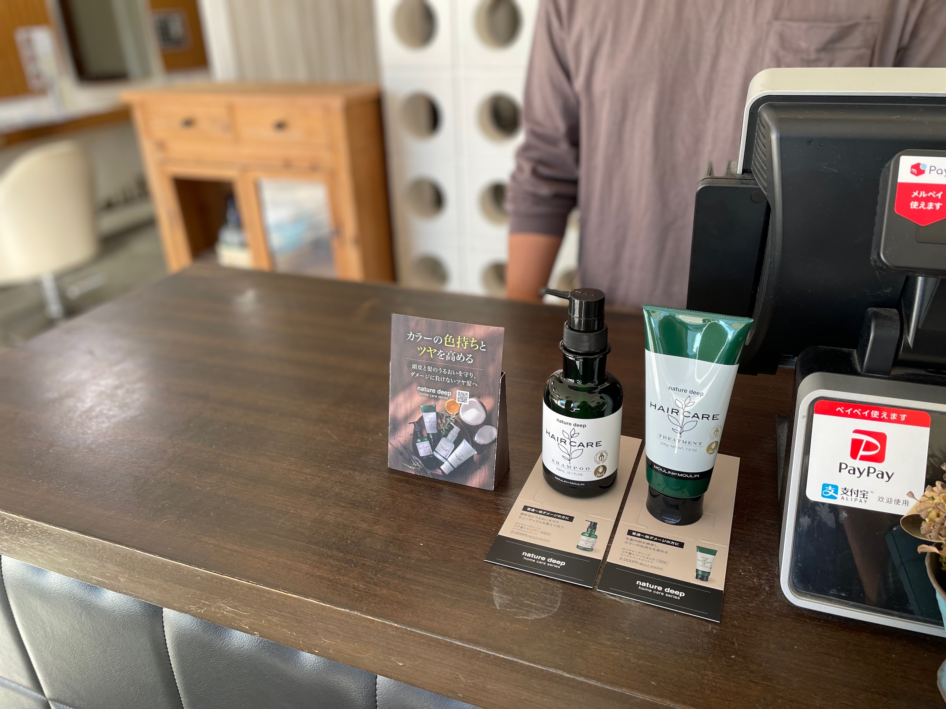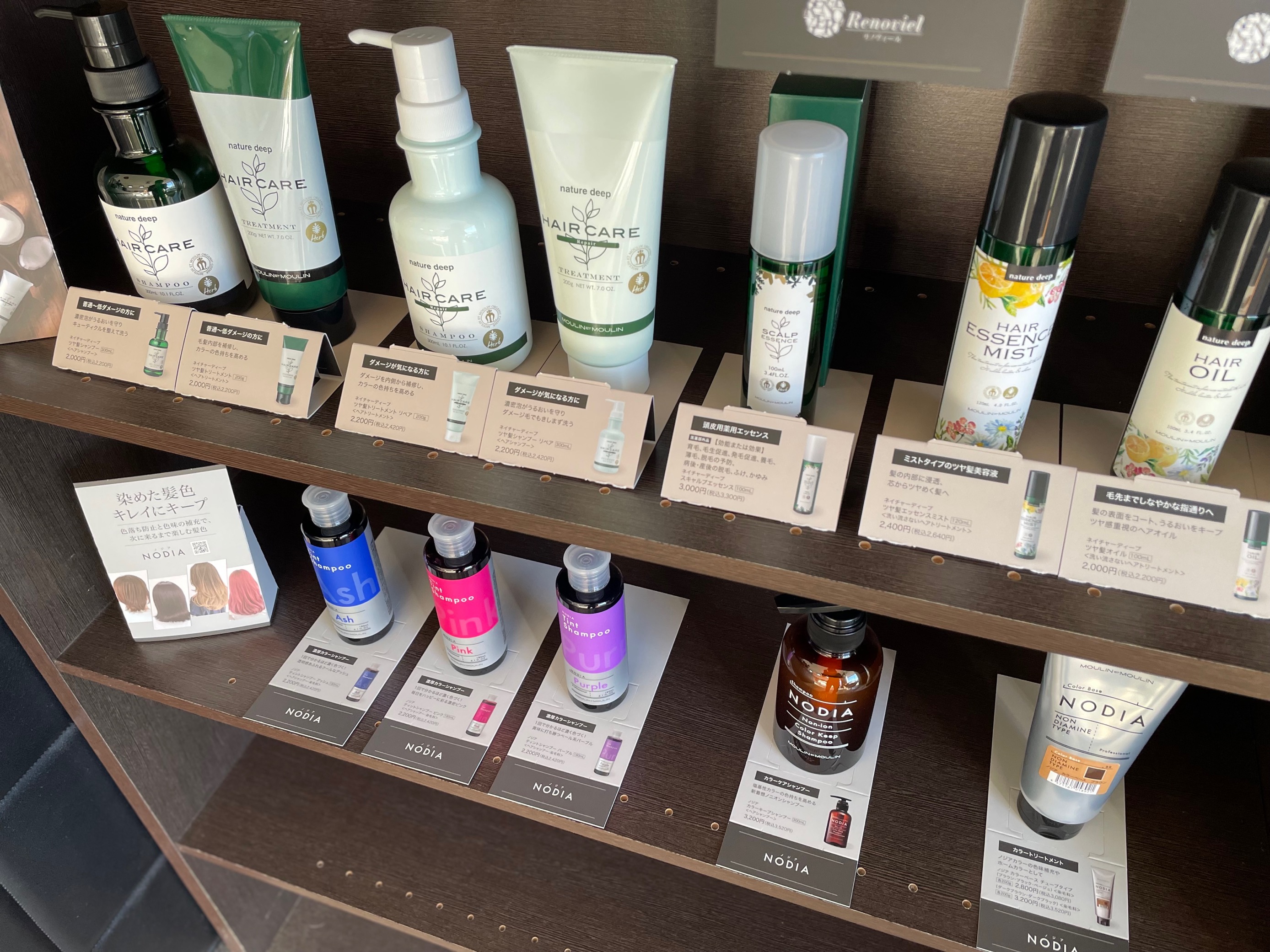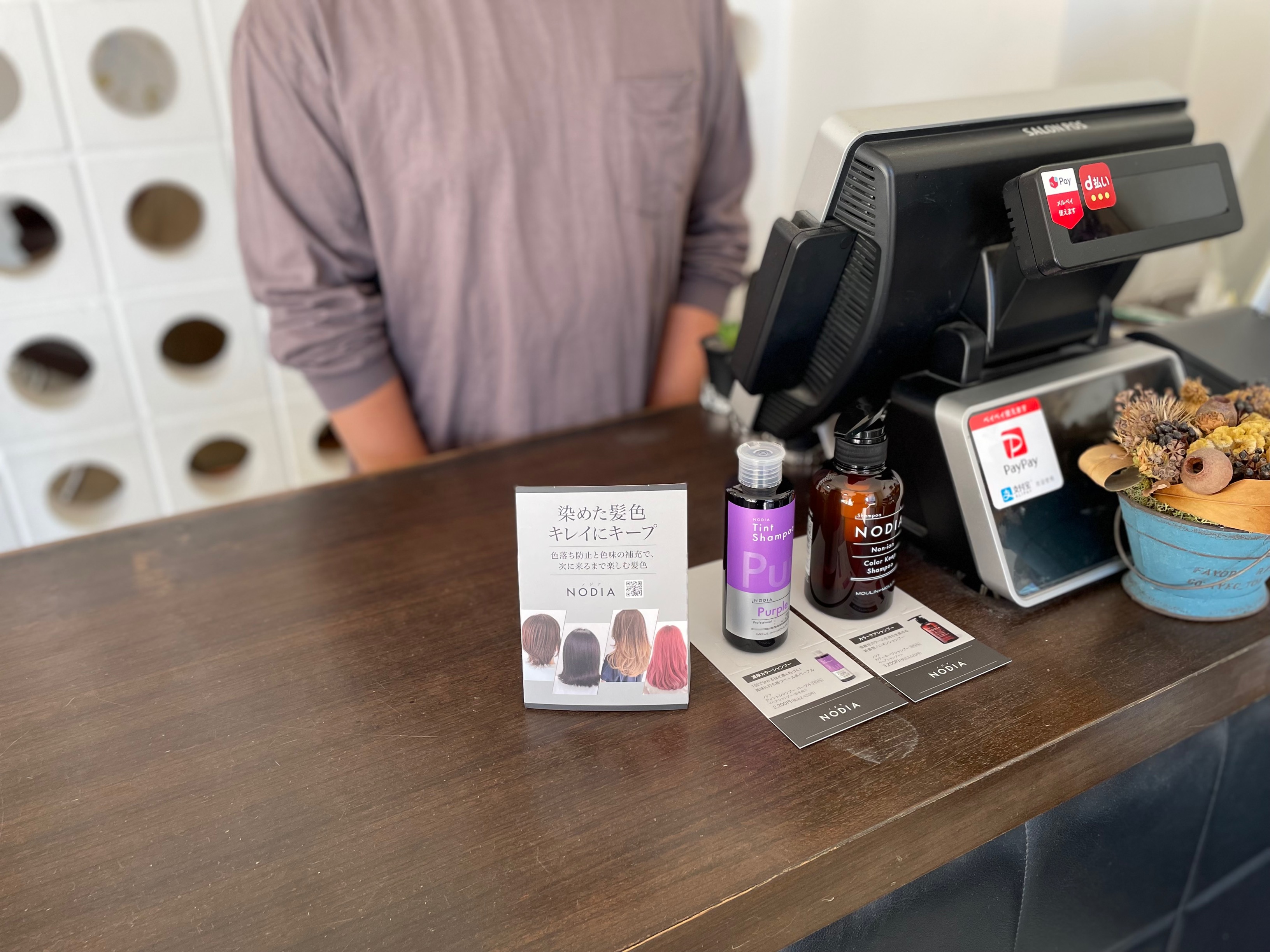 また、シャンプー台で使用したシャンプー・トリートメントを置き、「今日はカラーの色持ちを考えて、こちらを使用しました」とご紹介することもできます。