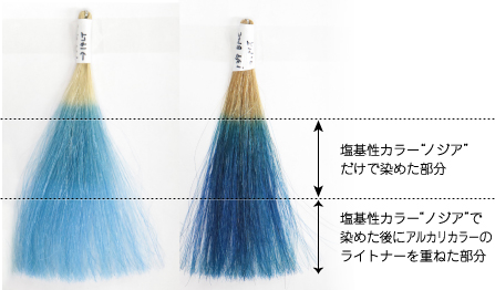 塩基性カラーの色味の変化を確認しやすいように、アルカリカラーはライトナー※を使用しました。
