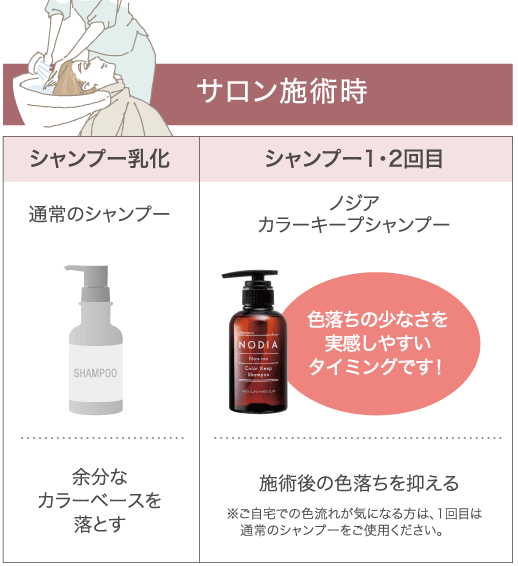 新着想ノニオン洗浄成分で、ノジアの色持ちを高める。