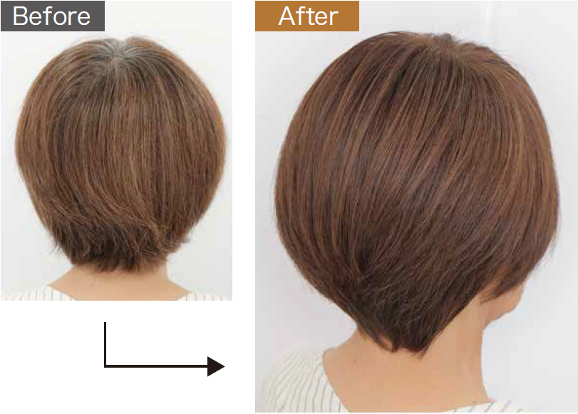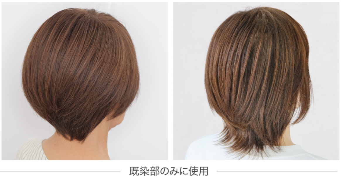 新生部にアルカリカラーを使用し、既染部にノジアを使用することで、継続的に明るさを楽しむことができます。