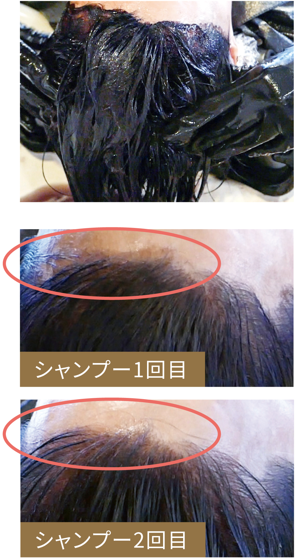 頭皮や皮膚についたものは、シャンプーである程度は落とす事ができます。しかし、多少色残りするケースもありますので、事前に頭皮の染着を防ぐためスキンプロテクトオイルをご使用いただきます。お顔周りや首筋、耳回りについては、フェイスプロテクトクリームをご使用ください。