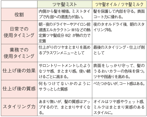 髪の悩みや求める仕上がり、使用するシーンなど、3つの商品の役割や使い分けについてご紹介します!