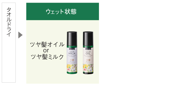 “ツヤ髪オイルまたはツヤ髪ミルク”はキューティクルの外側からのケアですので、