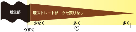 クセ戻りなし部は多く、クセ戻りあり部はかなり薄めに塗布します。新生部5mm程度にオーバーラップします。 - クセを伸ばしたい新生部に第1剤塗布