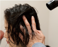 根元からしっかりと流した後、トリートメントで仕上げます。やさしくタオルドライした後、根元から毛先に向かって整えるように乾かします。