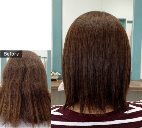 ダメージの度合いは様々ですが、基本的にはストレート施術を行う際は必ず事前処理をしてダメージ保護をしていただく方が安心して施術できますし、仕上がりがキレイになります。
