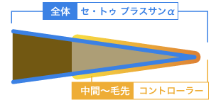 ※コントローラーは毛先に向かって塗布量を徐々に増やすように
