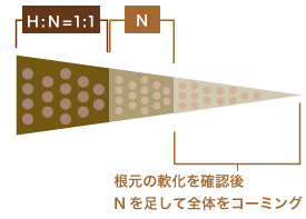 ・根元にストレートフォンデュ第1剤H(ハード):N(ノーマル) =1:1