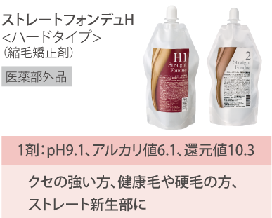 1剤はハードタイプとノーマルタイプの2種類あります。ハードタイプを100とするとノーマルタイプは60程度のパワーです 。