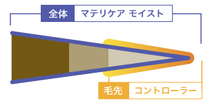 ダメージの気になる中間~毛先をマテリケアモイストとプロテクト順序で事前処理し、チリつきとかかりムラを予防。