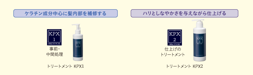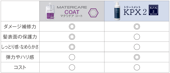マテリケア『コート』、トリートメントKPX『KPX2』が対象です。(両方とも仕上げのトリートメントの置き換えとして使用できます。)