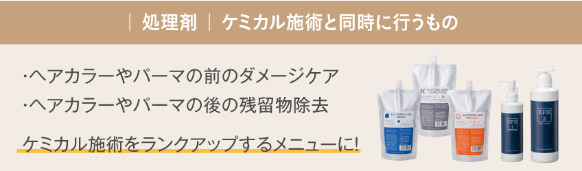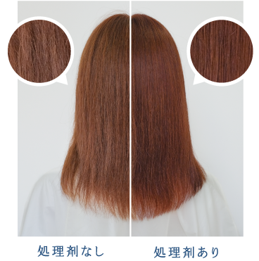 処理剤は『施術前に髪に不足した成分を補う』『施術後のダメージ要因を取り除く』ことができるため、