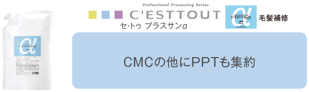 ※セ・トゥ『プラスサンα』にもPPTを配合していますが、分子量はそれほど大きくないため、ダメージ毛の保護やダメージホールの補修はマテリケア『プロテクト』の方が効果が期待できます。