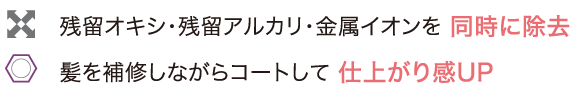 - ヘアカラー後のダメージ進行を防ぎ、色の定着を高めるためにもオキシバッファーで残留物を除去