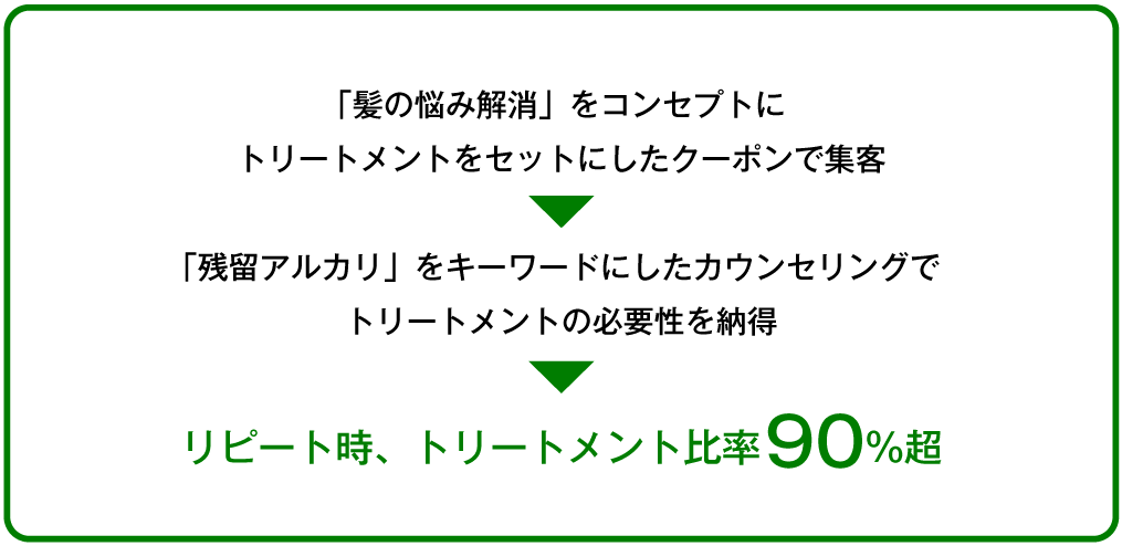 「髪の悩み解消」をコンセプトに、トリートメントをセットにしたクーポンで集客