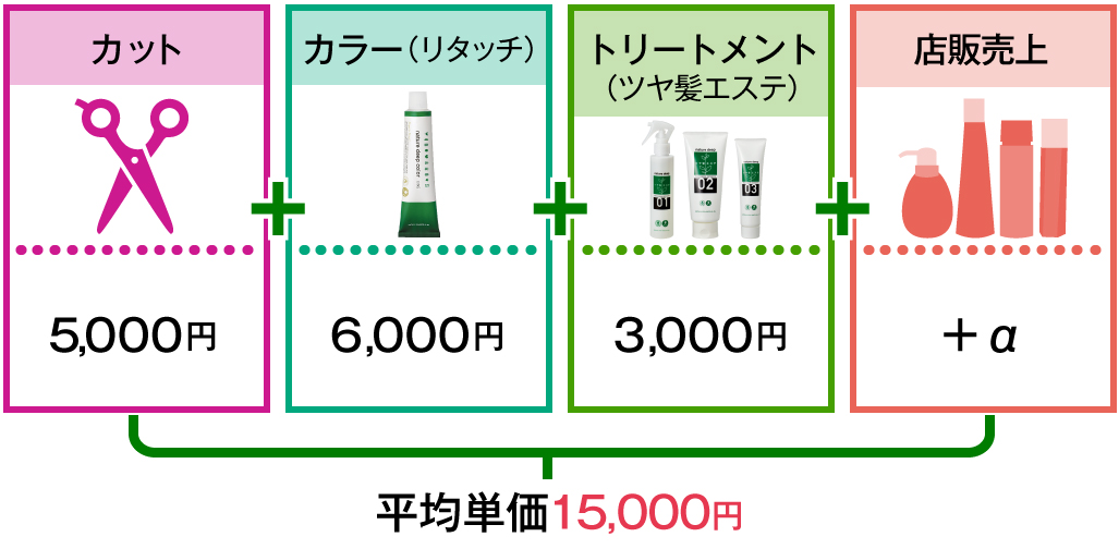 トリートメントを増やすことで、話はヘアケアにつながります。ヘアケアをどうしたらいいかと言う話になれば、ホームケアの話になり、それはそのまま店販につながります。